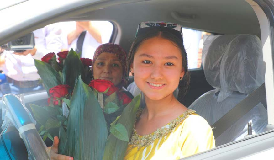В завершение беседы Президент выразил благодарность за воспитание талантливой любознательной девушки ее матери Наргизе Рахимовой и подарил легковой автомобиль «Спарк».