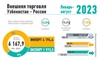 В 2022 г. товарооборот Узбекистана с Россией вырос на 23,6% и составил $9329,8 млн., при этом экспорт показал значительный рост на 48,4% до $3099,1 млн., импорт вырос на 14,1% до $6230,7 млн.