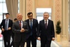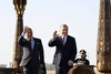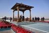 Жоқары мәртебели мийман ҳүрметине еки мәмлекеттиң мәмлекетлик байрақлары көтерилди, ҳүрметли қараўыл сап тартты.
