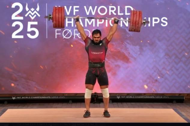 Jurayev won the gold medal with a world record in the snatch, achieved the overall championship with 232 kg in the clean and jerk and a total of 428 kg.