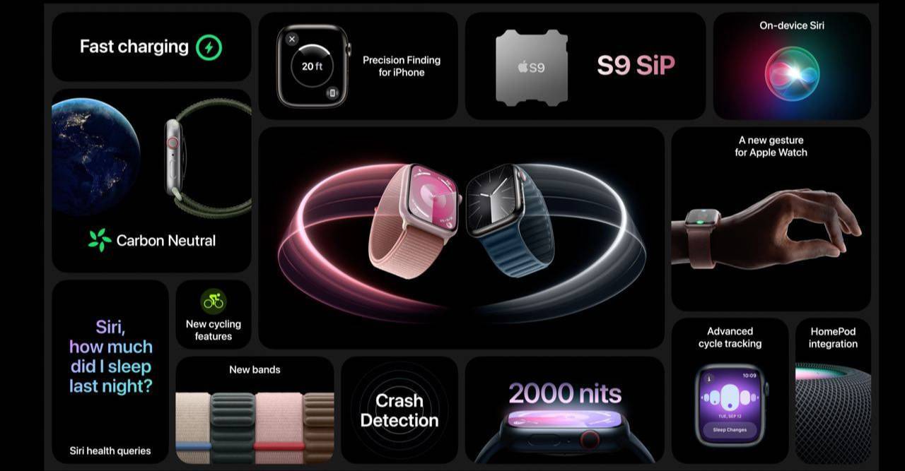 A new S9 processor has been announced for the Apple Watch Series 9 smartwatch. The maximum brightness of the screen has been increased to 2000 nits - Apple reports that the display is twice as high as the previous version in this indicator. In addition, the Double Tap function will appear. Thanks to it, the user can control the watch without touching the screen - by moving the fingers on the hand on which he wears the watch. Prices for the new watch will start at $399.