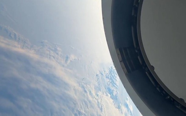 In the video, shot through the dome window of the spacecraft, you can see one of the poles of the Earth, over which the crew flies.