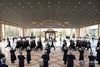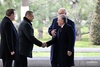 The heads of state walked around the guard of honor and greeted members of the official delegations.