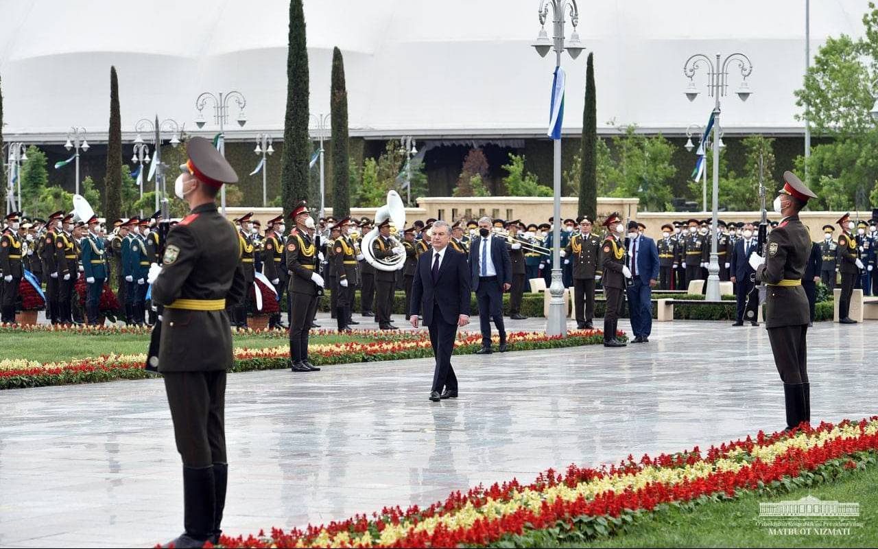 The officials of the ministries and agencies that make up the Armed Forces have lined up in the festively decorated park.