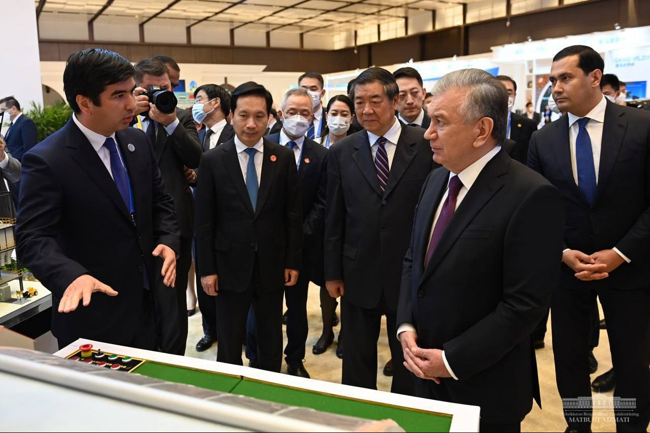 The delegations examined the stands dedicated to the cooperation between Uzbekistan and China in industry, infrastructure development, agriculture, science, education, and innovation. They were informed about the results and plans for mutually beneficial partnerships, new agreements, and promising investment projects developed specifically for the visit proposed for implementation in Uzbekistan.