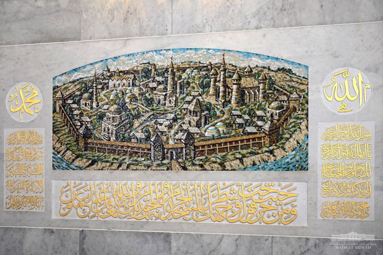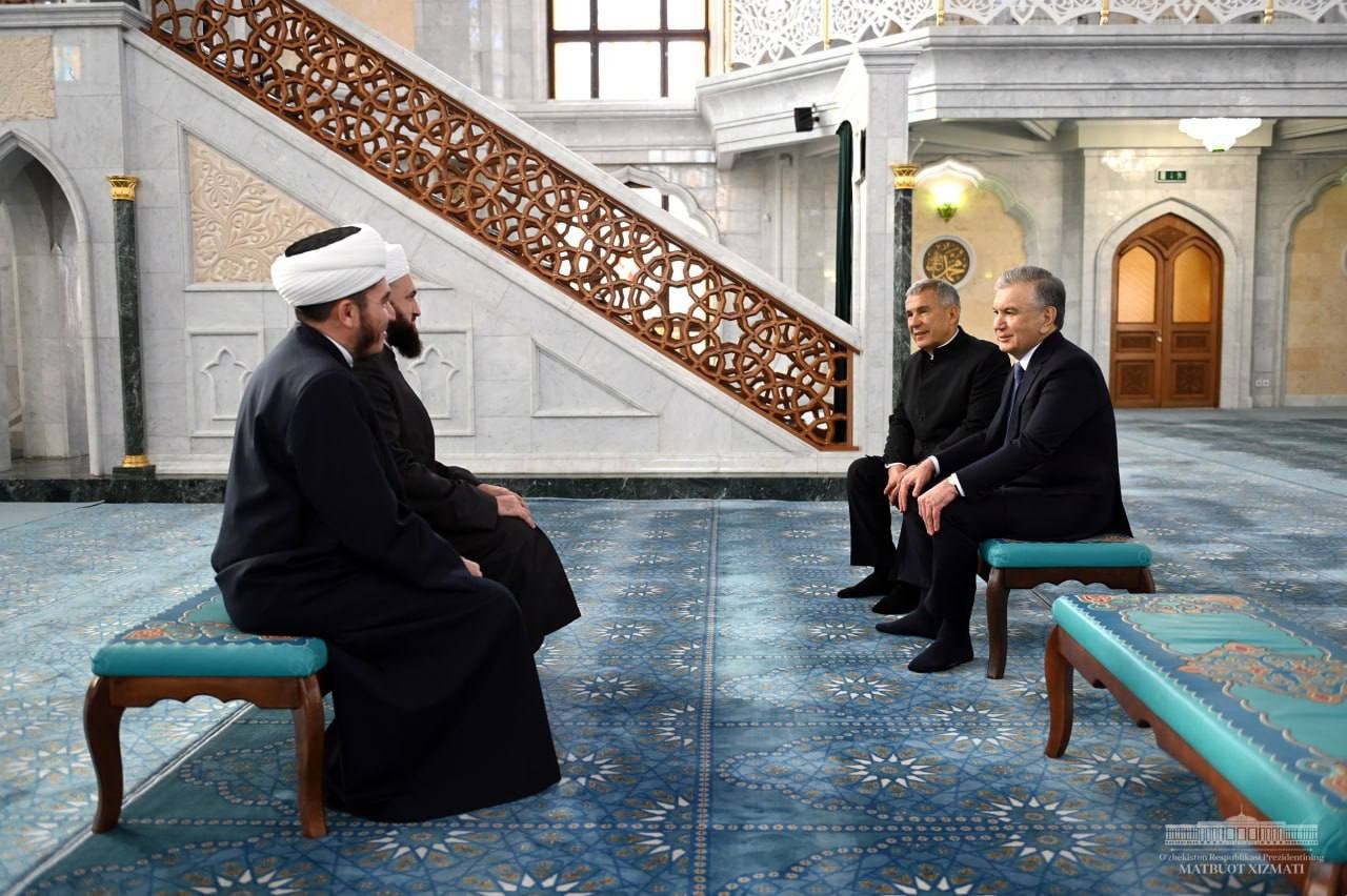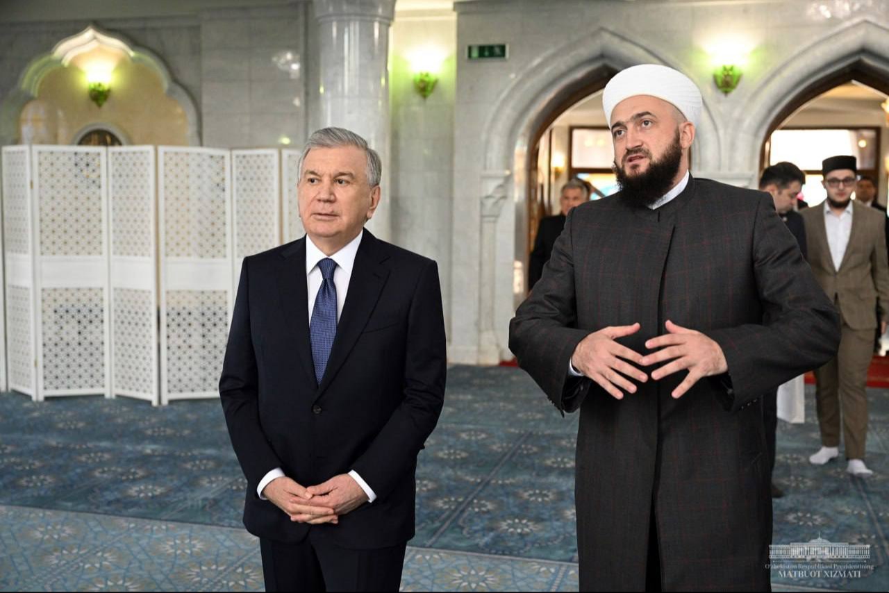 Here, the President of Uzbekistan visited the Kul Sharif Mosque. Chairman of the Spiritual Administration of Muslims of the Republic of Tatarstan Kamil Samigullin told the distinguished guest in detail about the history of the building. The dua was recited.