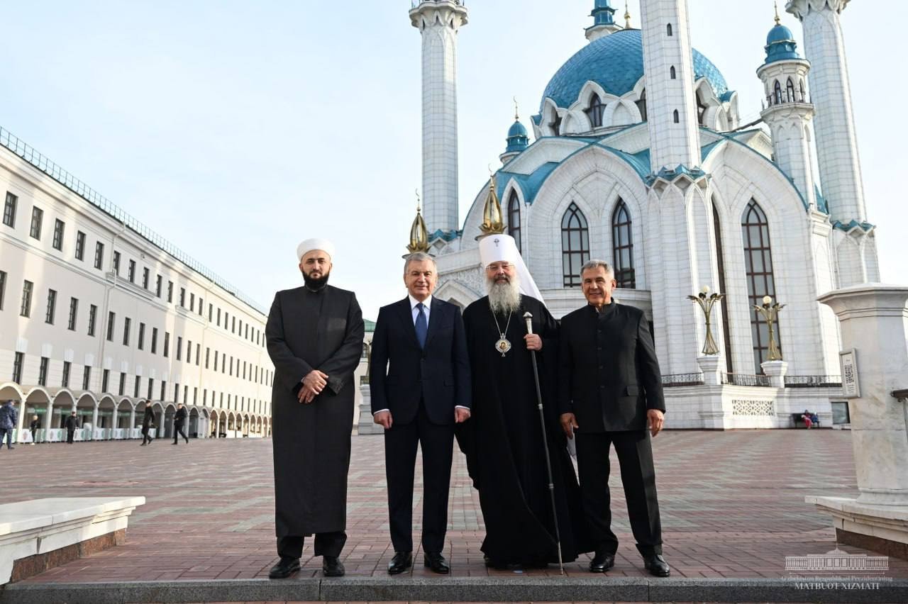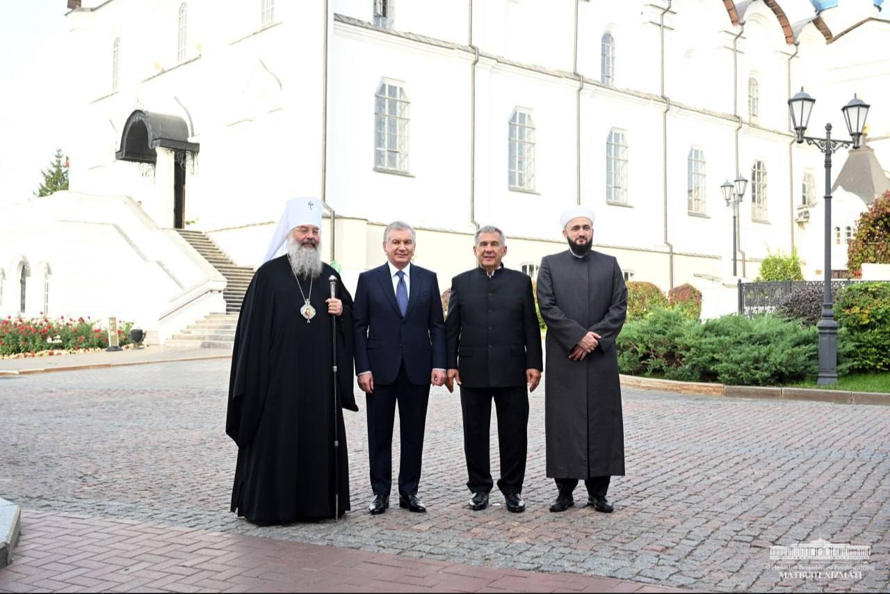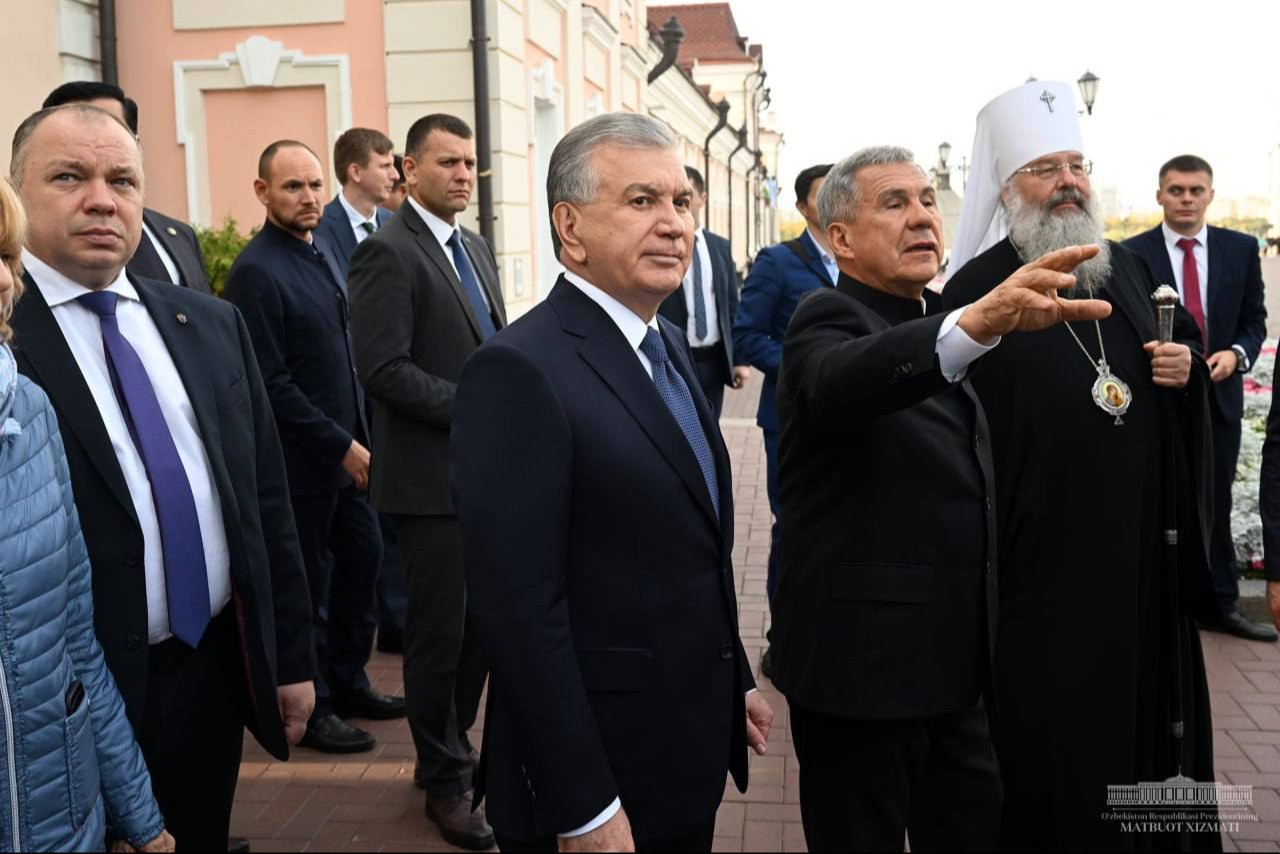The President of Uzbekistan also toured the Cathedral of the Annunciation, accompanied by Metropolitan Kirill of Kazan and Tatarstan. This is the oldest building on the territory of the Kazan Kremlin, built in the 16th century. It is a striking example of Pskov architecture.