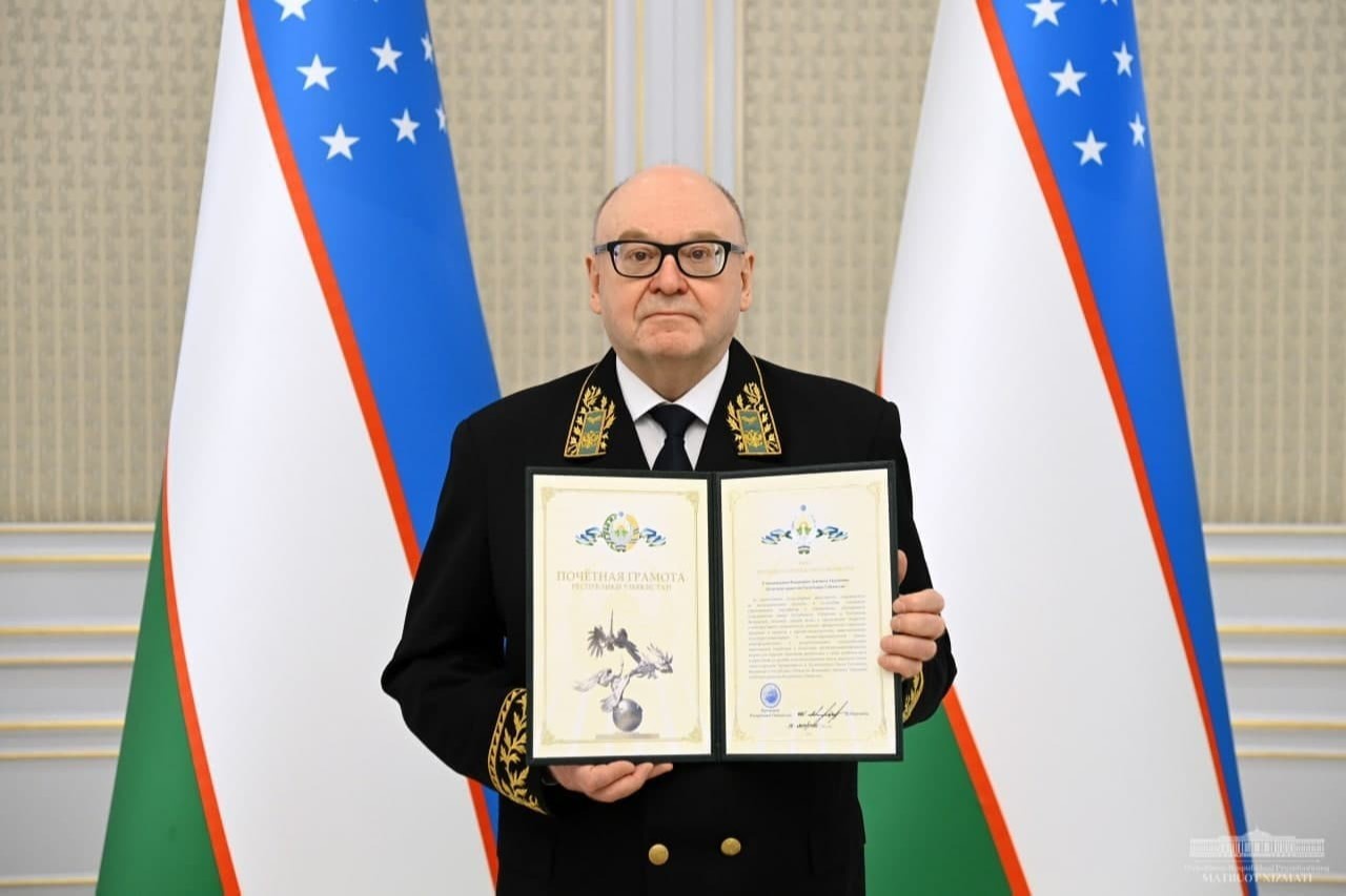 Following the meeting, the President of Uzbekistan awarded the Ambassador of Russia with the Certificate of Honor of the Republic of Uzbekistan for his great contribution to the deepening of interstate relations and the development of comprehensive ties, an active role in strengthening friendship and mutual understanding between the peoples of the two countries.