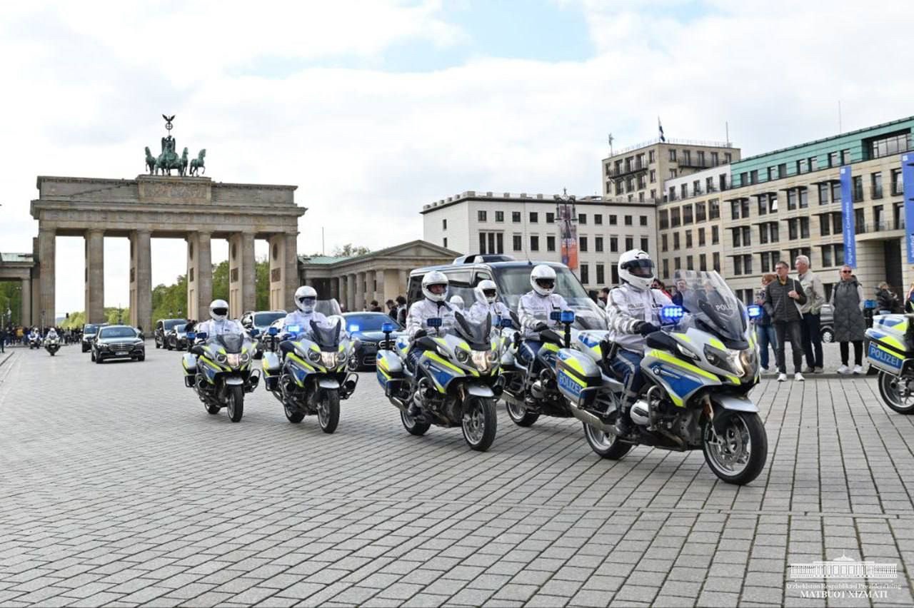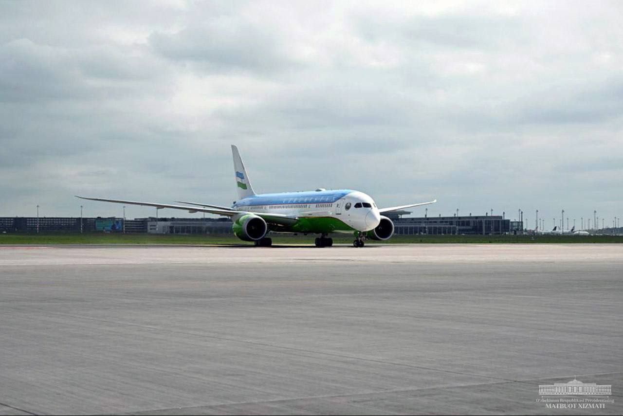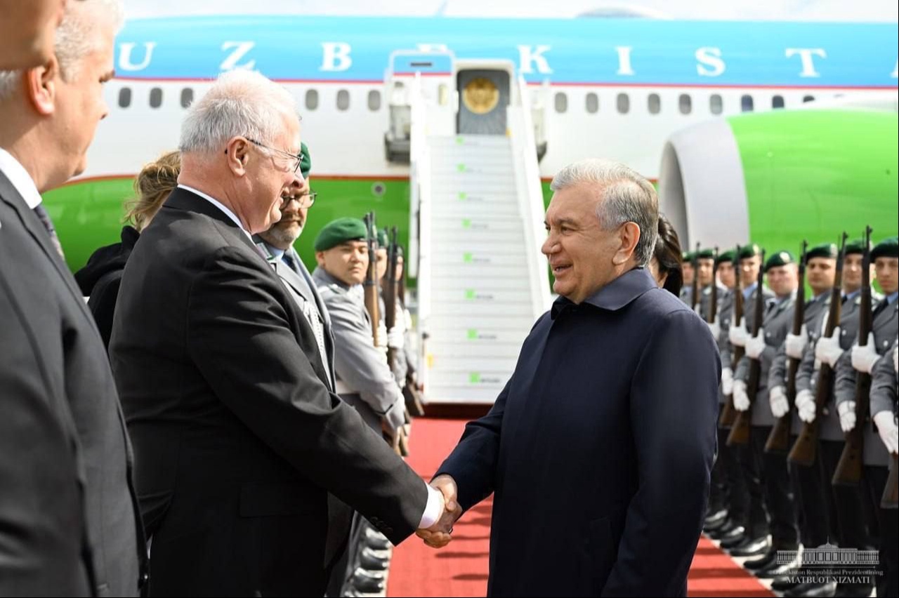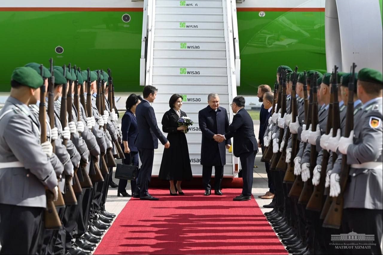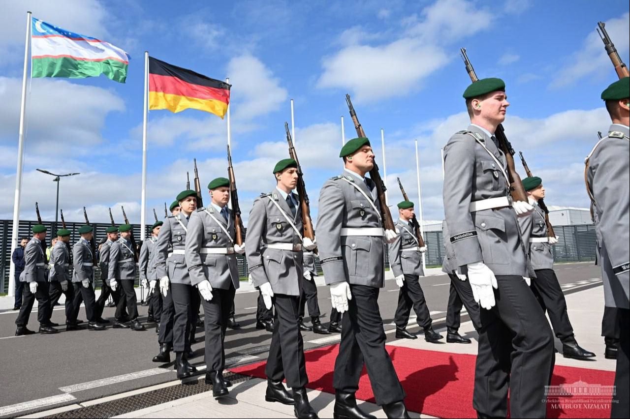 At the Berlin Brandenburg Airport, the state flags of the two countries were raised, and the guard of honor was lined up for the arrival of the Leader of Uzbekistan.