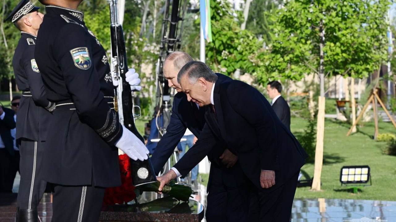 During the visit, the Presidents of Uzbekistan and Russia honored the memory of the fallen soldiers by laying wreaths at the Ode to Fortitude Monument, erected in memory of the widow Zulfiya Zakirova, who lost five sons in the war.