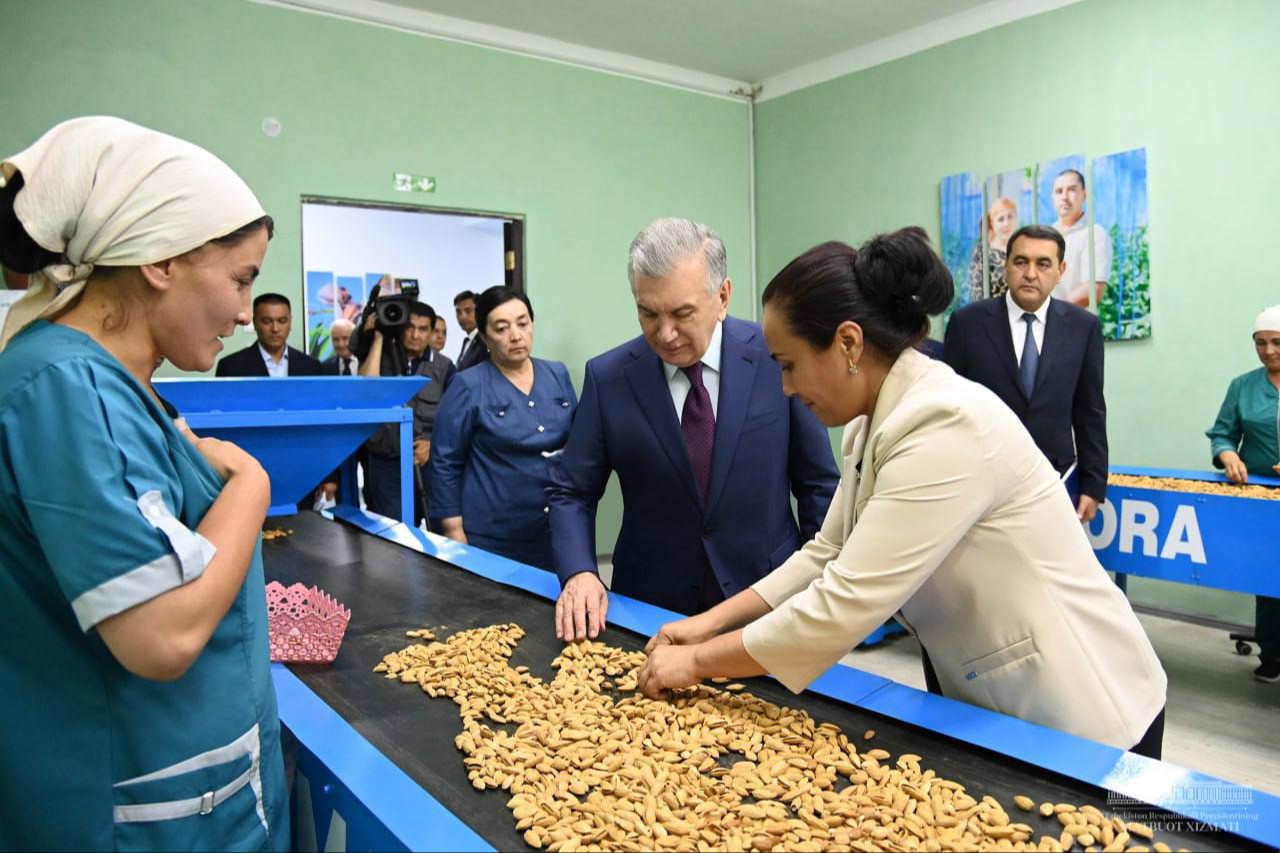 The Head of state got acquainted with the activities of the Gulnora Matkulobod Bodomlari enterprise.