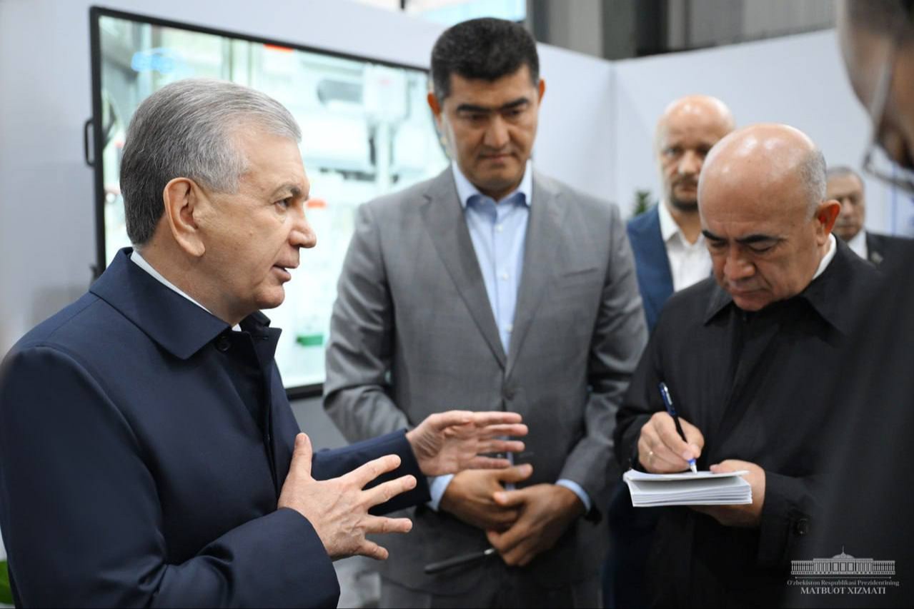 The Head of state got acquainted with the plant’s production process and talked to the employees. In the company’s showroom, he examined samples of finished products.