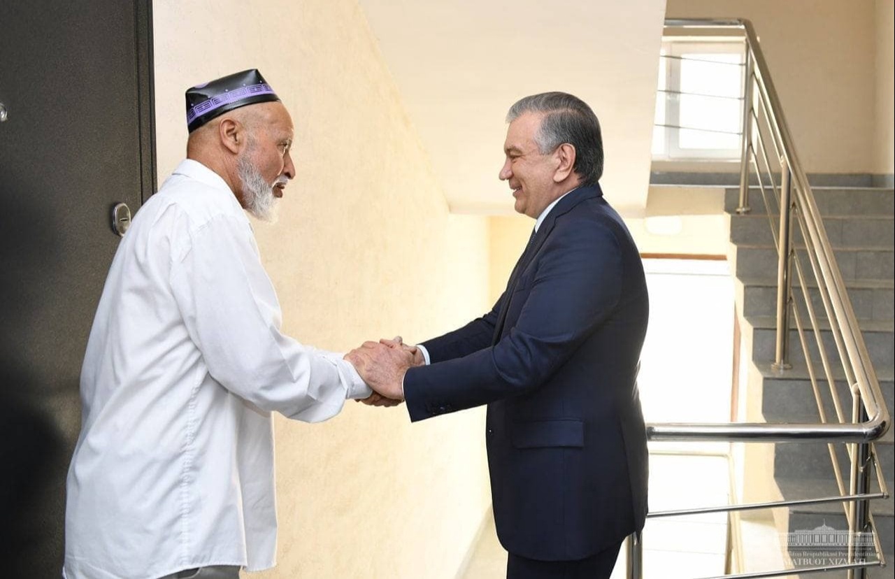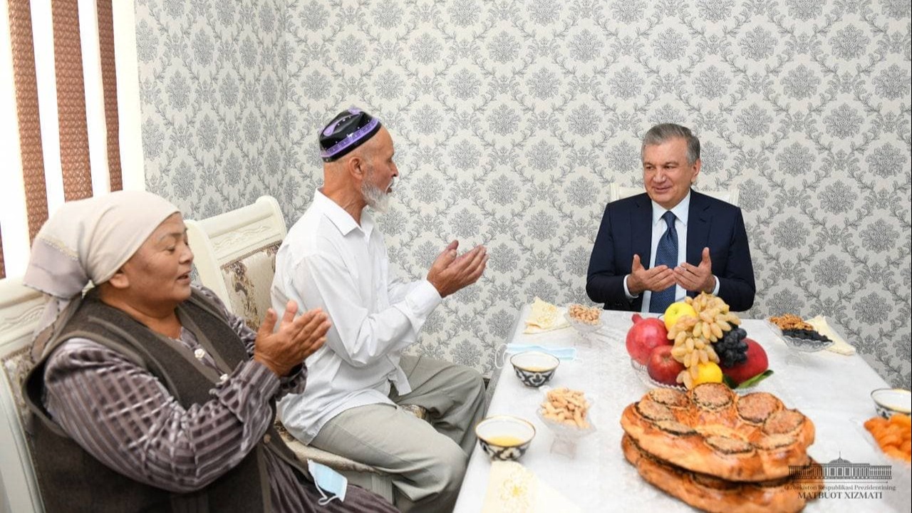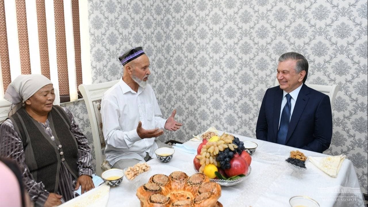 The Head of the state visited the house of Mr. Abduqakhor and Mrs. Oyzoda, who moved to one of the new apartments in the mahalla. They raised four children.