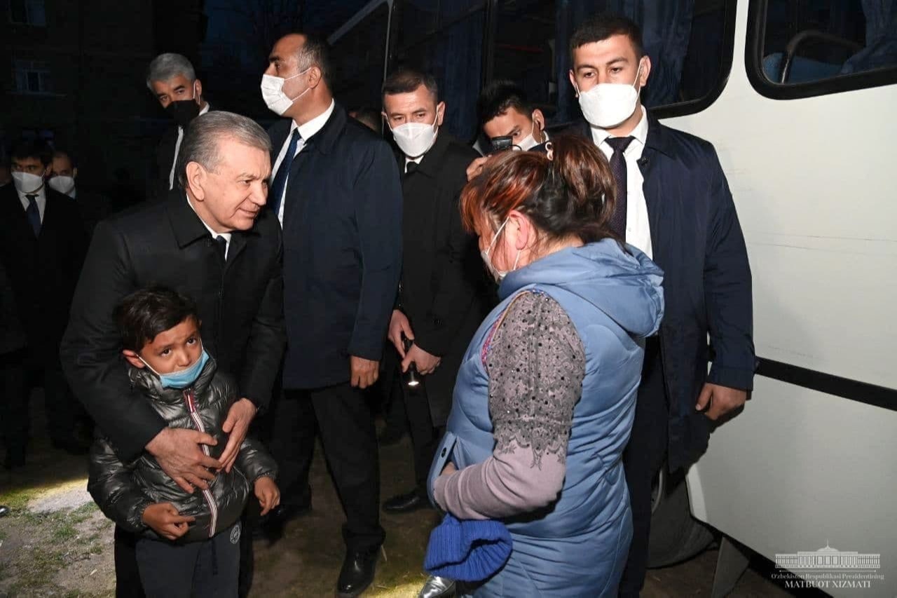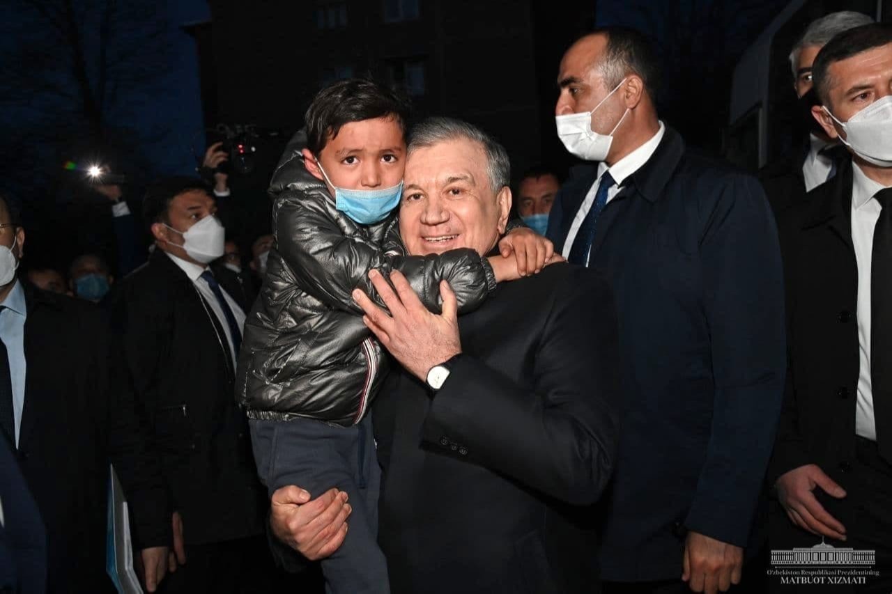 Shavkat Mirziyoyev asked about the problems in the mahallas, demands and requests of the residents. He instructed the Hokim of the city to allocate land to a boy who told about his desire to open his own business. The President lifted him and photographed with a boy who wanted to meet the President.
