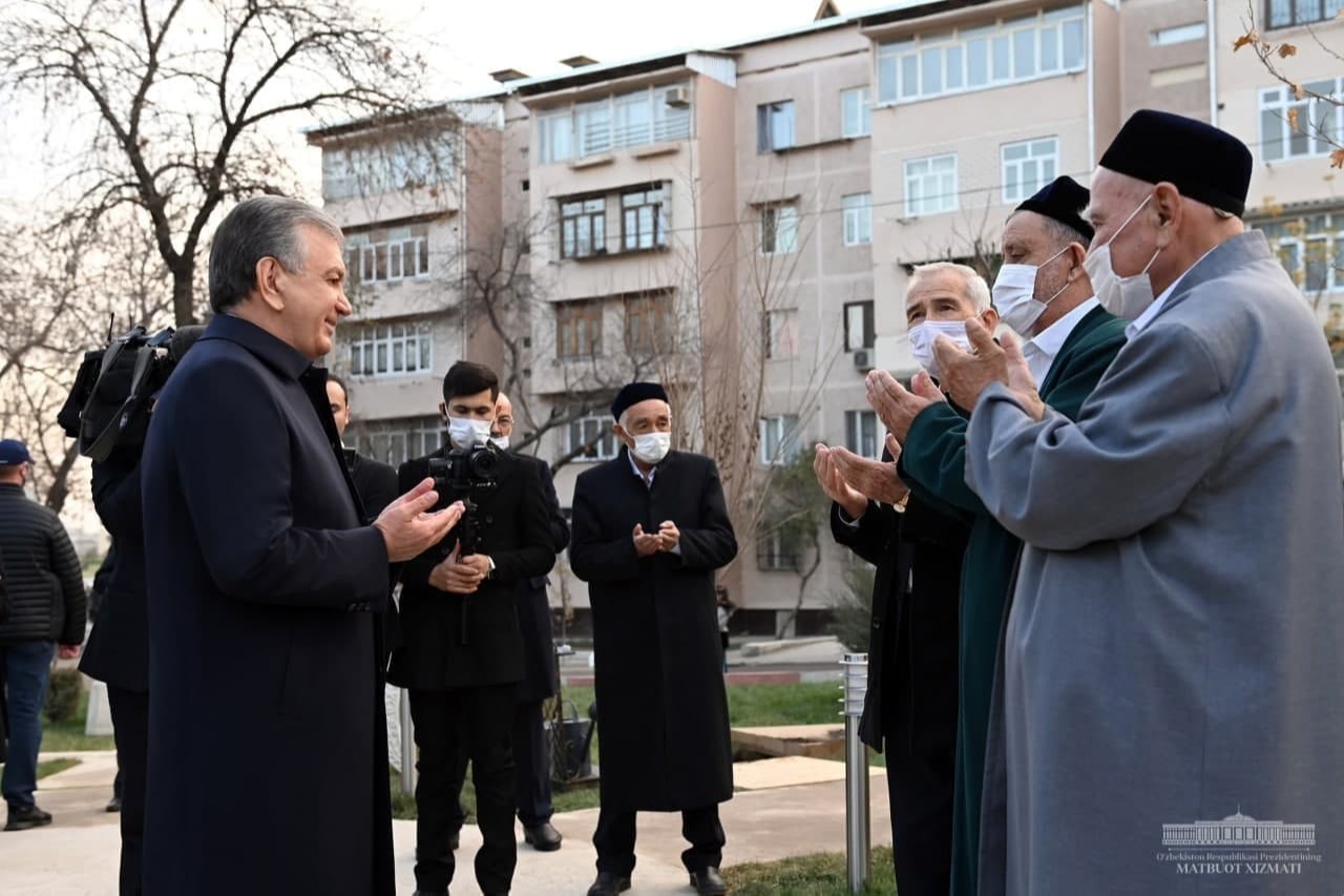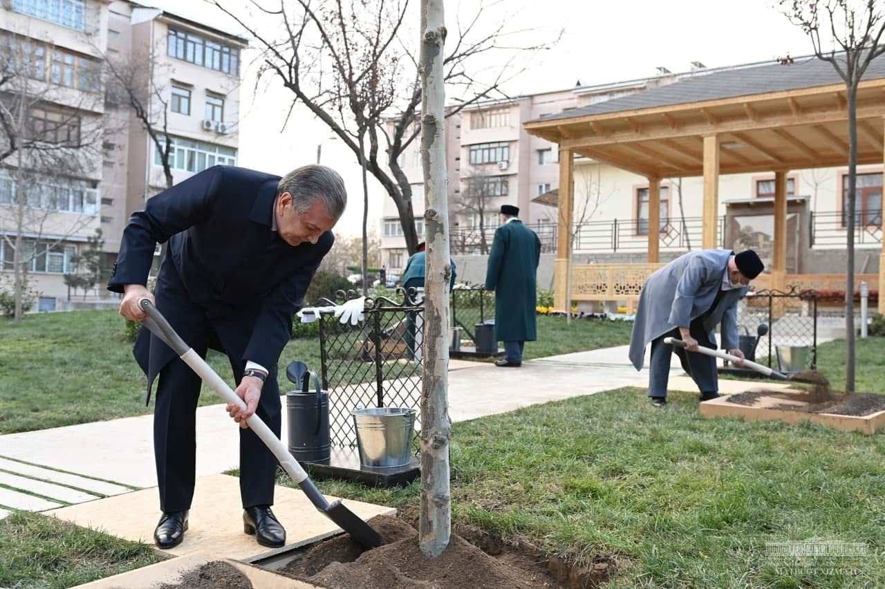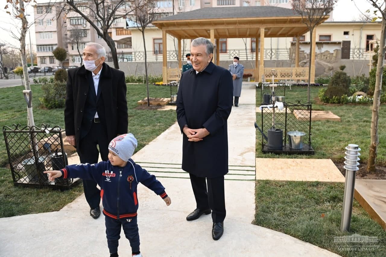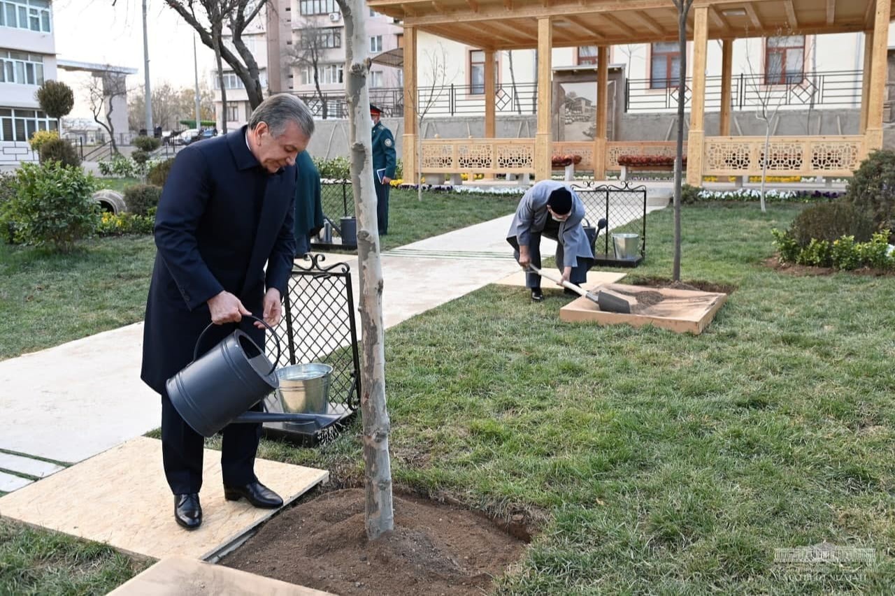 Within the framework of the Yashil Makon project, trees were planted, and a small square was organized in the mahalla. Shavkat Mirziyoyev together with mahalla elders planted trees in the park. Representatives of the older generation recited the dua with wishes of peace and prosperity to the country.