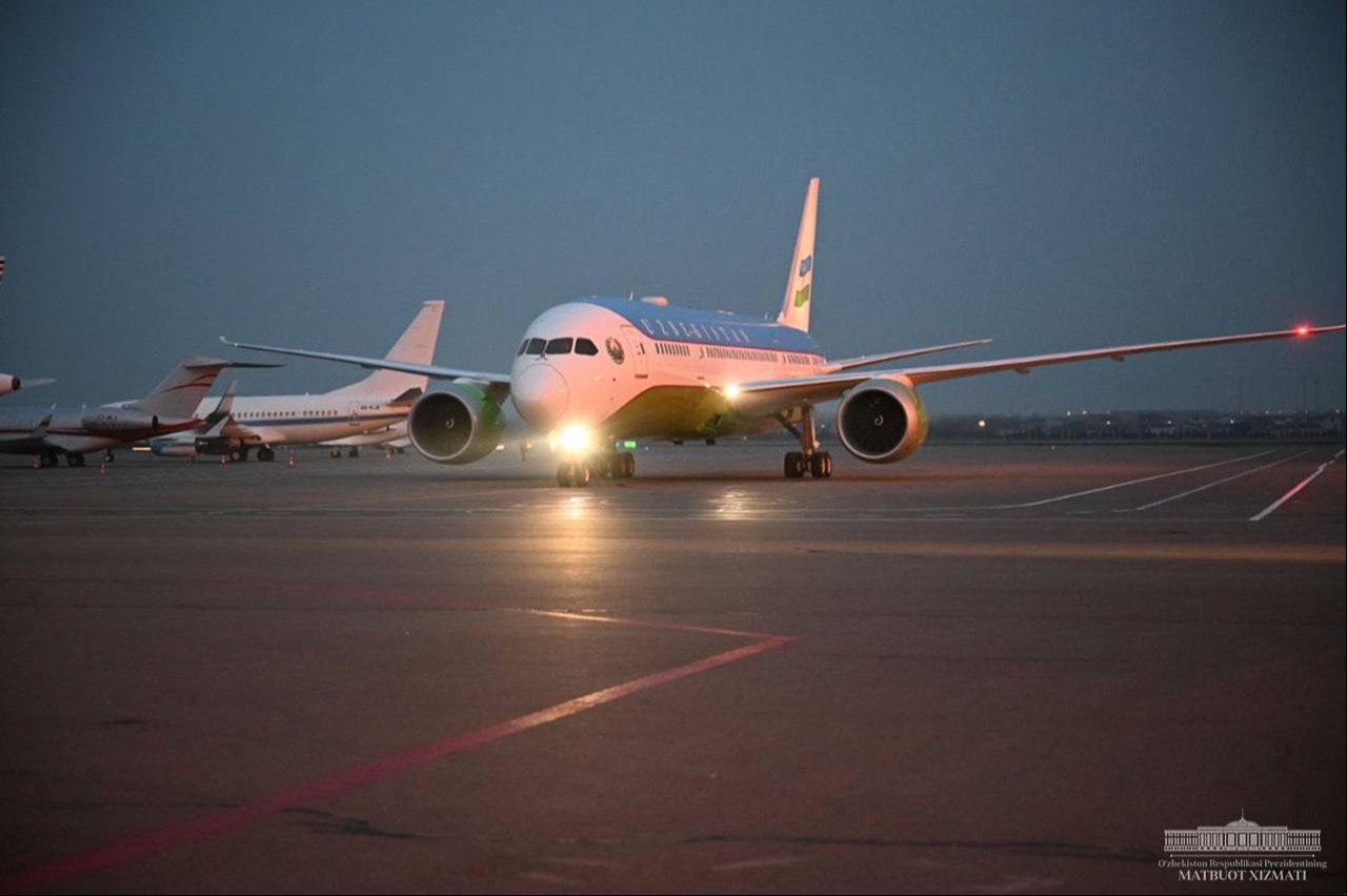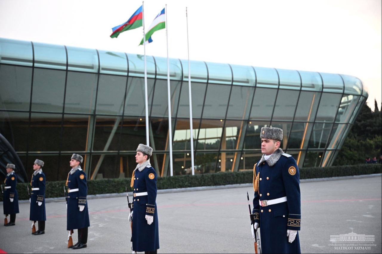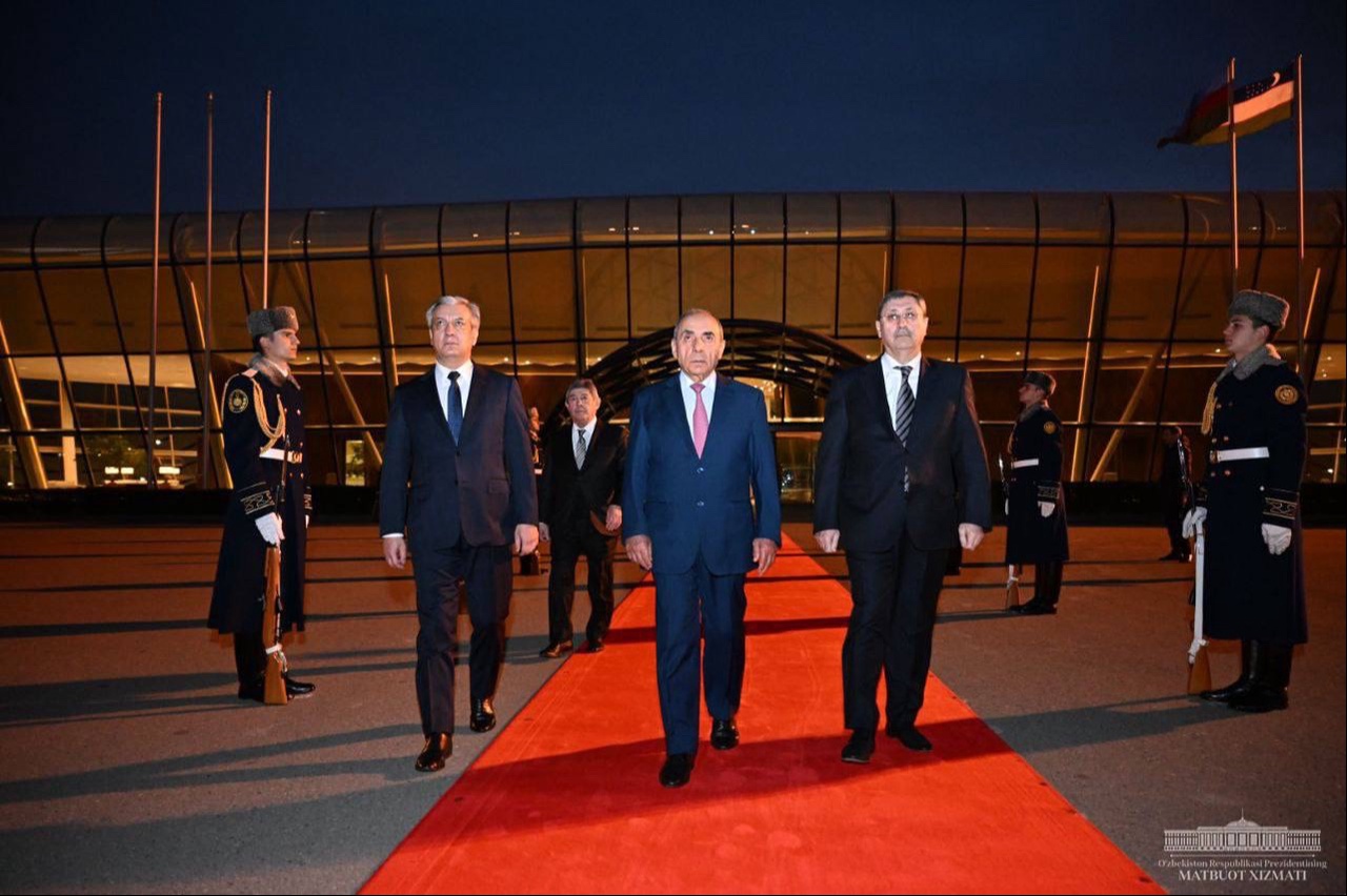 First Deputy Prime Minister of Azerbaijan Yagub Eyyubov and other officials welcomed the President of Uzbekistan at the Heydar Aliyev International Airport.