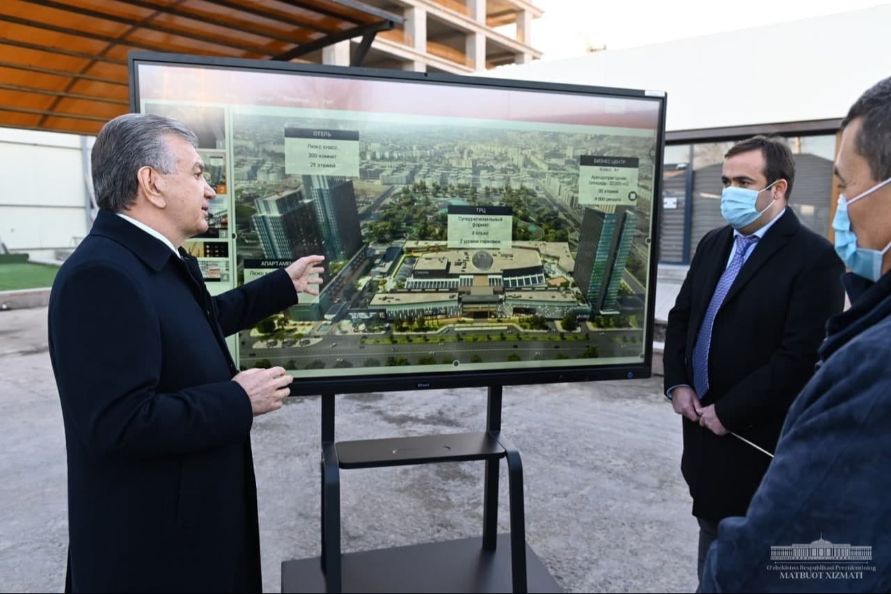The President also visited the Tashkent City Mall, which is under construction on Almazar Street. The complex consists of a 29-storey hotel, a 30-storey business center, a 4-storey shopping and entertainment center. Their construction is in full swing and is expected to be completed by 2023.