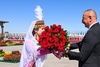 National songs and dances were performed at the airport decorated with the state flags of the two countries and flowers.