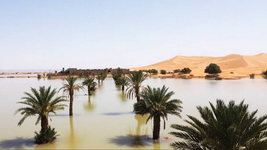 At the same time, water gushing through the sands and oases of the desert claimed the lives of about 20 people in Morocco and Algeria. It also caused damage to farmers' crops.
