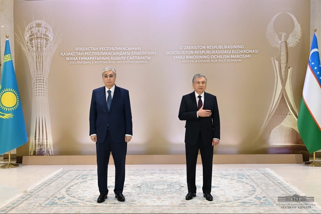 Presidents Shavkat Mirziyoyev and Kassym-Jomart Tokayev, having cut the symbolic ribbon, solemnly opened a new building of the diplomatic mission of Uzbekistan.