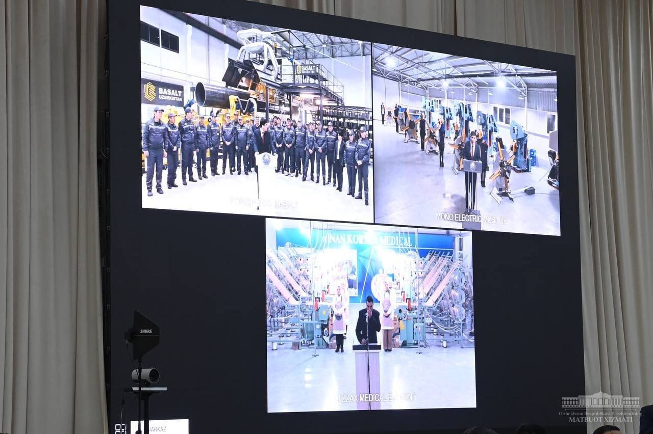 Following the meeting, a ceremony was held to launch three new enterprises – Eco Basalt Group in Farish district, Mono Electric and Super Medical Elements in Jizzakh Industrial Zone.