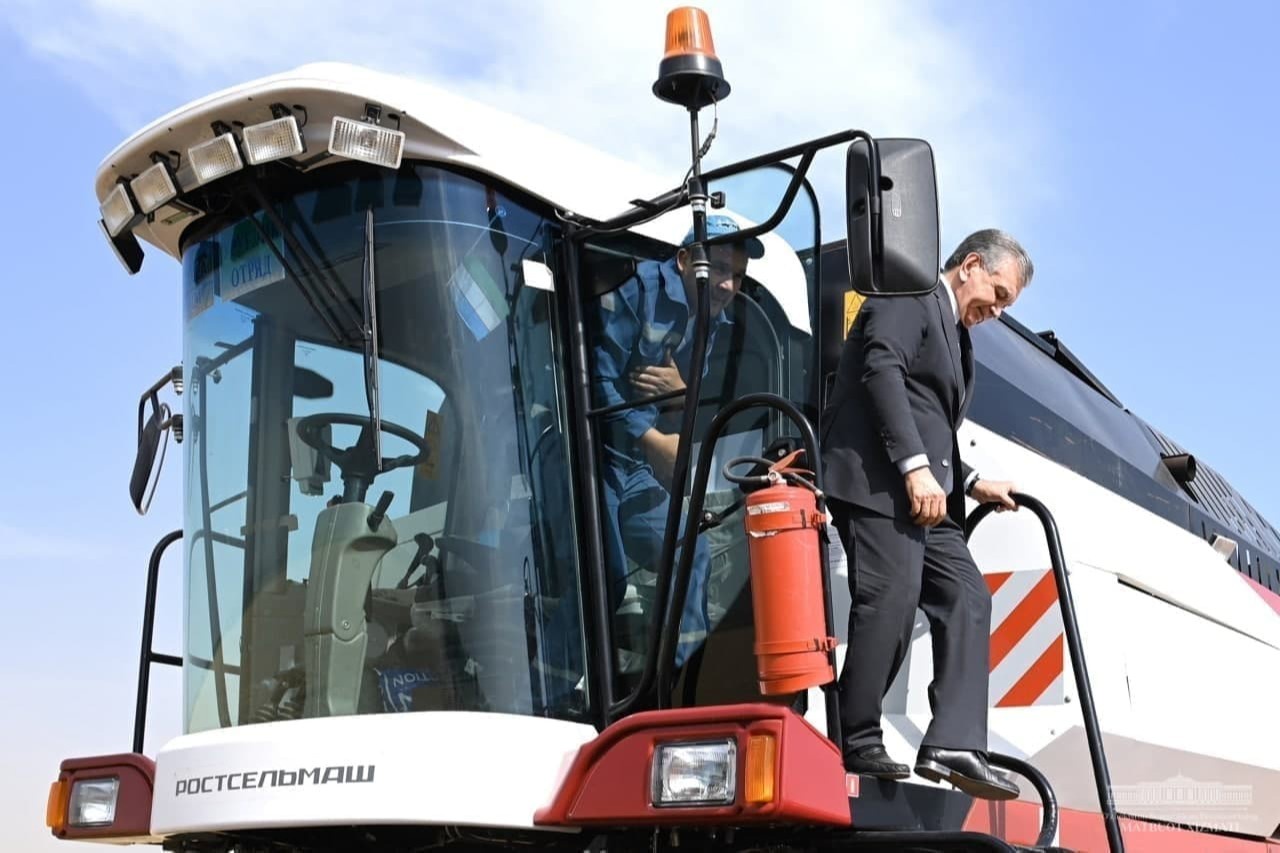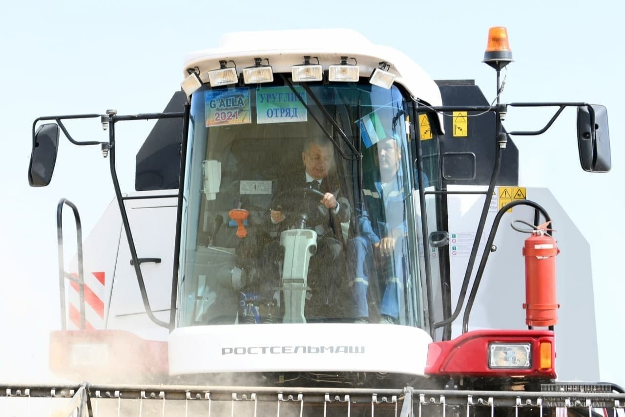 The President got behind the wheel of a combine harvester and removed the grain in the field.