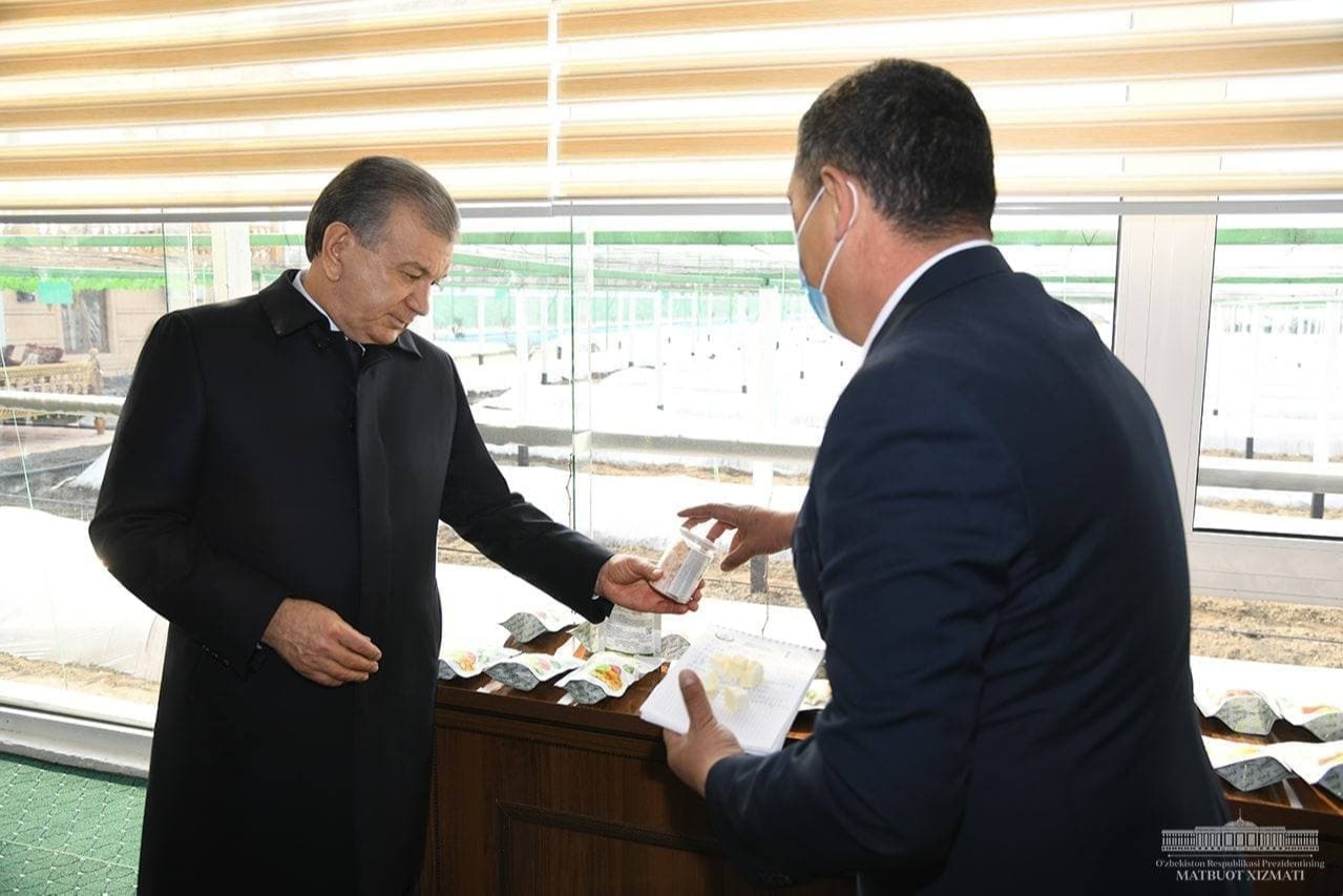 Previously, 20 quintals of cotton and 25 quintals of grain were grown on 6 hectares in the cooperative which was visited by the President. Last year, a vineyard was laid out here and grapes of such varieties as Husayni, Kelin Barmoq and Rizamat were planted. Tomatoes, cucumbers, herbs, peppers and other vegetables are grown between the rows. A drip irrigation system has been introduced.