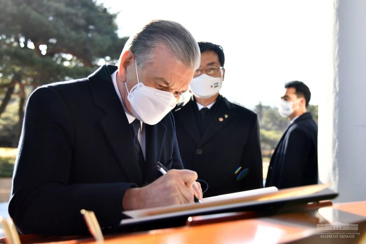 Shavkat Mirziyoyev, together with his spouse, laid a wreath at the memorial and left a commemorative plaque, which will later be exhibited in the museum of the complex.
