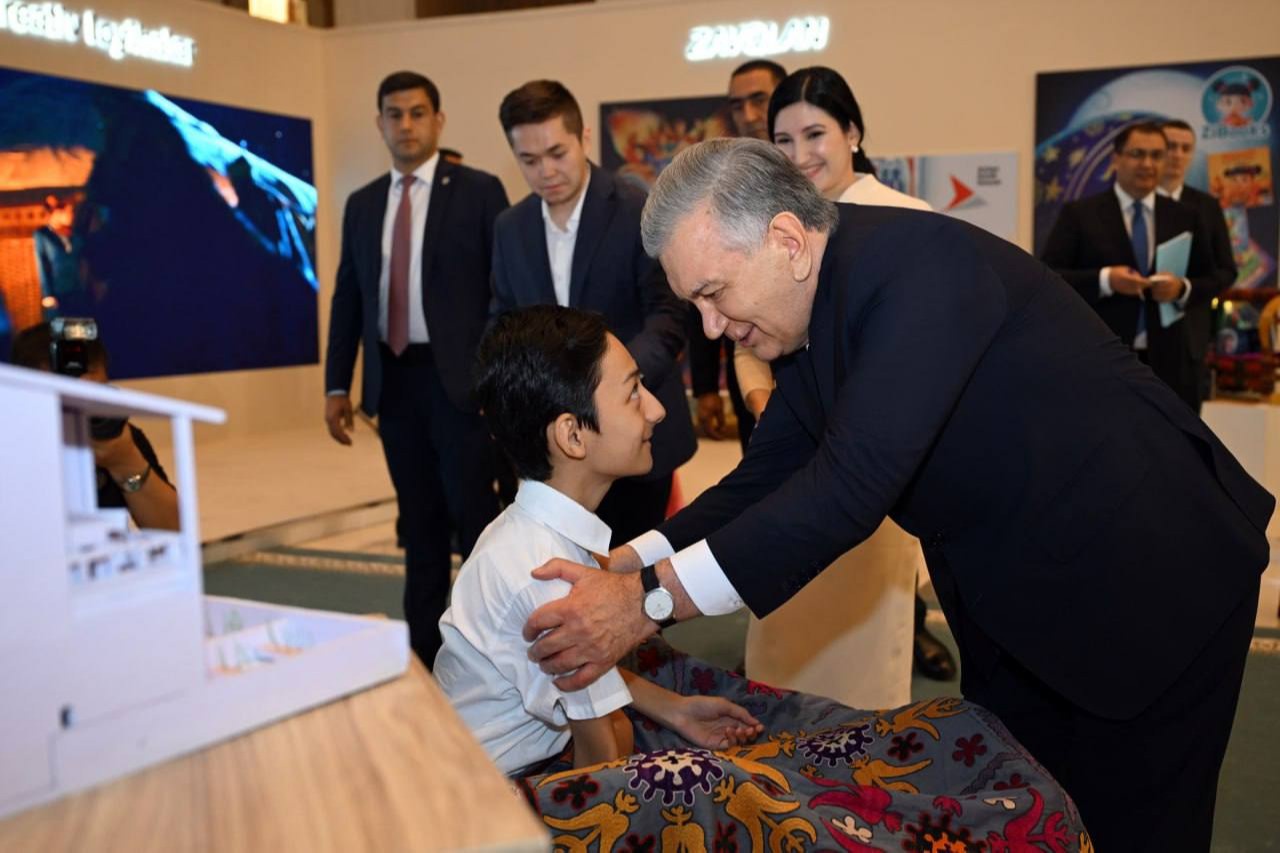 President Shavkat Mirziyoyev personally reviewed the showcased projects and spoke with their creators.