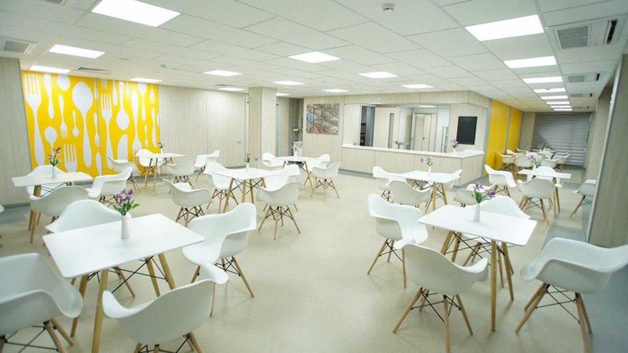 The perinatal center has the most modern amenities based on the experience of leading clinics. There is a multidisciplinary polyclinic on the ground floor of the building. The upper floors have patient rooms and general practice rooms, including the intensive care unit for children. Here it is possible to treat 140 patients at the same time.