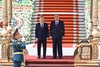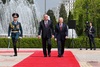 A guard of honor was lined up in honor of the distinguished guest, and the national anthems of the two countries were played.