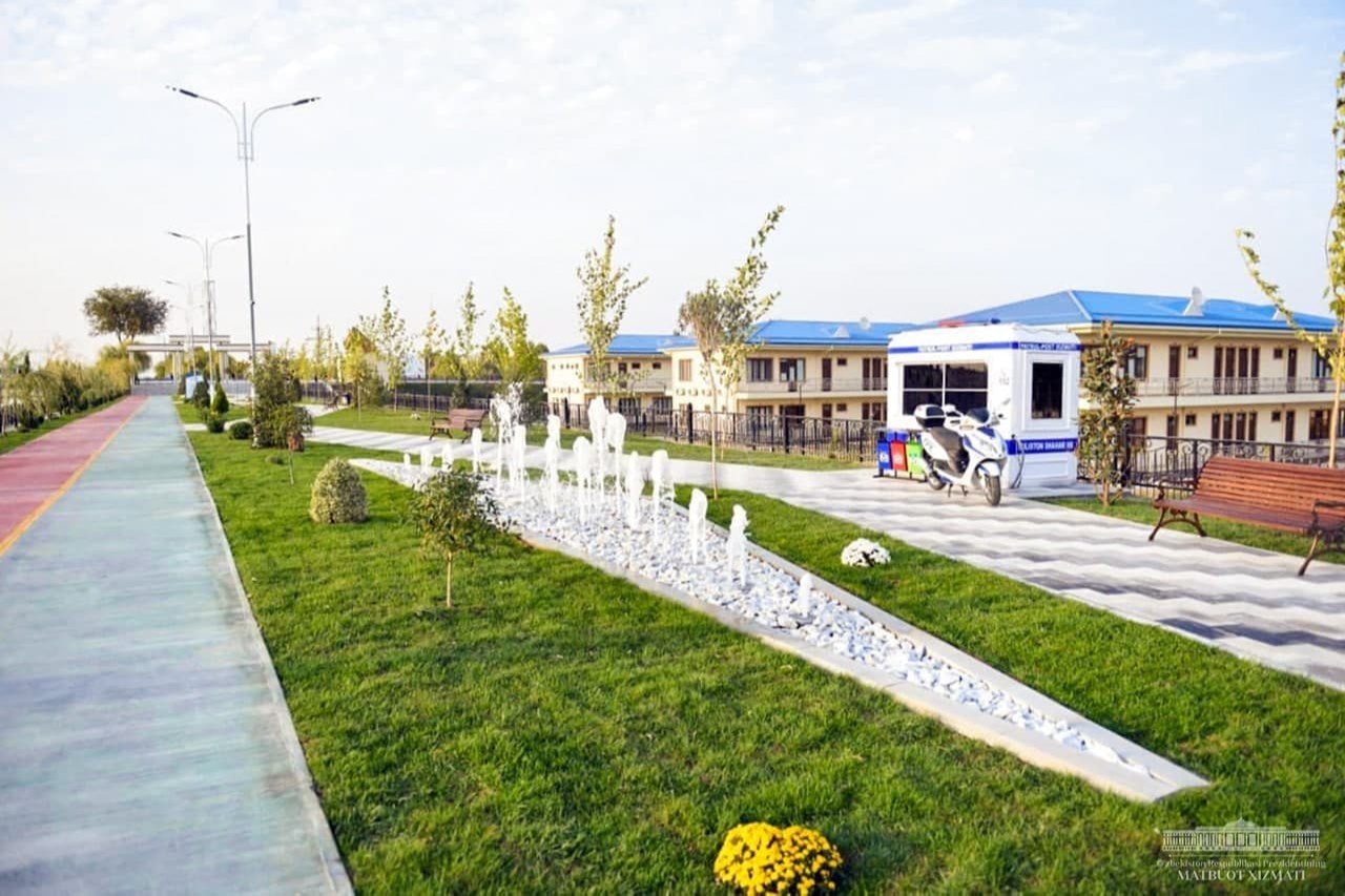 The advantage of the center is its location on the bank of Dustlik canal. The territory has been landscaped, a beautiful alley has been created. Ornamental trees have been planted. Pedestrian and bicycle paths and fountains have been built. Mini-libraries have been built next to the benches.