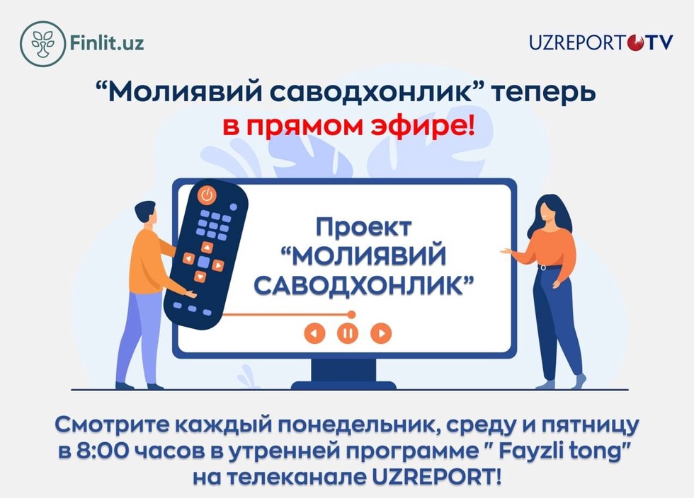The educational project "Moliyaviy savodxonlik" is implemented jointly with the commercial banks "Ipak Yuli Bank", "Turon Bank", "Uzsanoatkurilishbank", "Hulk Bank", as well as with the payment system "Humo" three times a week - every Monday, Wednesday and Friday.