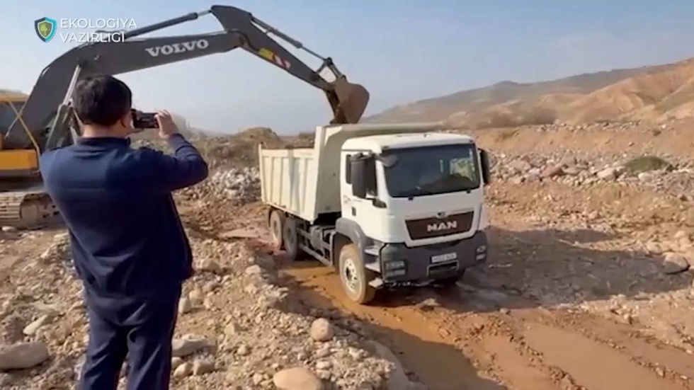 During the raid in the Bostanlyk district, the fact of illegal extraction of sand and gravel mixture in the coastal zone of the Aksok Ota river using special equipment (an excavator and a MAN truck) was established.