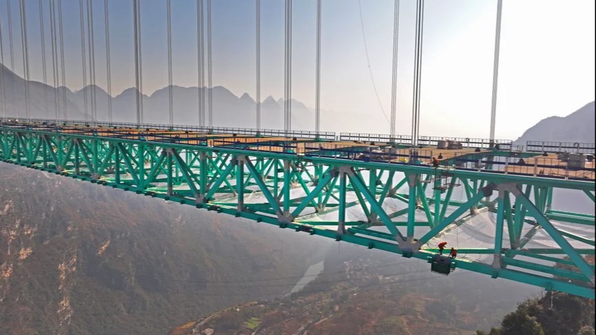 The bridge crosses the Huajiang Grand Canyon over the Beipan River. Now you can get to the other side in just a minute. It surpasses in height the existing Duge Bridge, located 200 kilometers upstream of the same river. The bridge is scheduled to open in June this year. mir24.tv.
