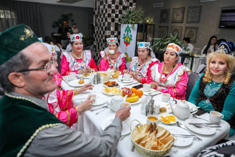 This evening, a diverse palette of Tatar dishes was presented, performed by the hostesses of the Tatar cultural center with their own hands. Kosh tele, chak-chak, ochpochmak, paremyach, gubadia and other dishes, which the guests of the evening tasted with great appetite. Among the participants, a noodle cutting contest was held, a quiz on the knowledge of Tatar dishes, as well as cooking kistiby according to Yunus Akhmetzyanov's recipe.