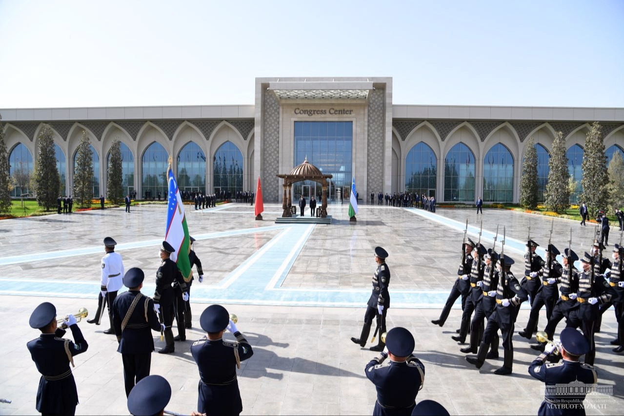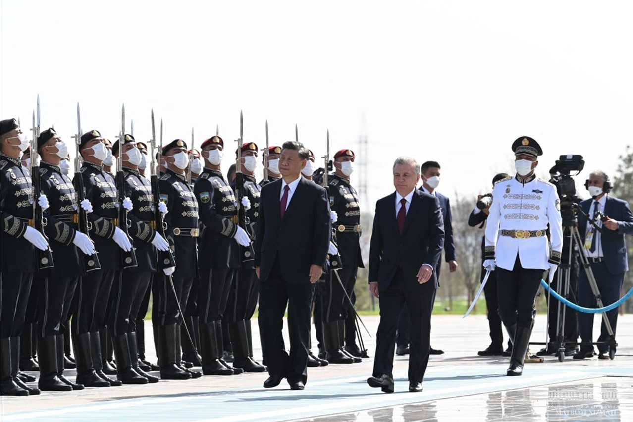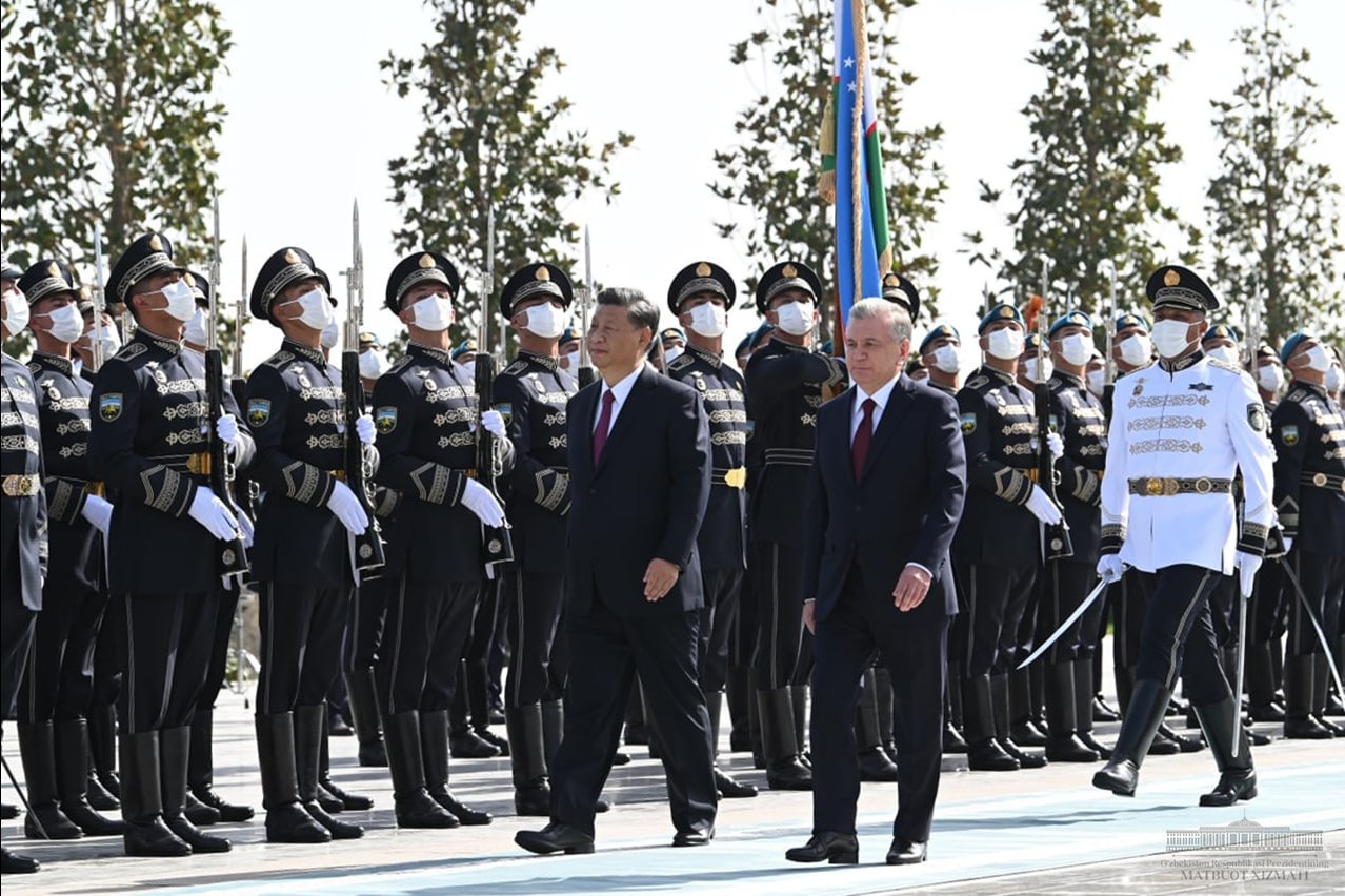President of Uzbekistan Shavkat Mirziyoyev and President of China Xi Jinping took the podium. The national anthems of the two countries were played. The guard of honor marched in front of the heads of state.