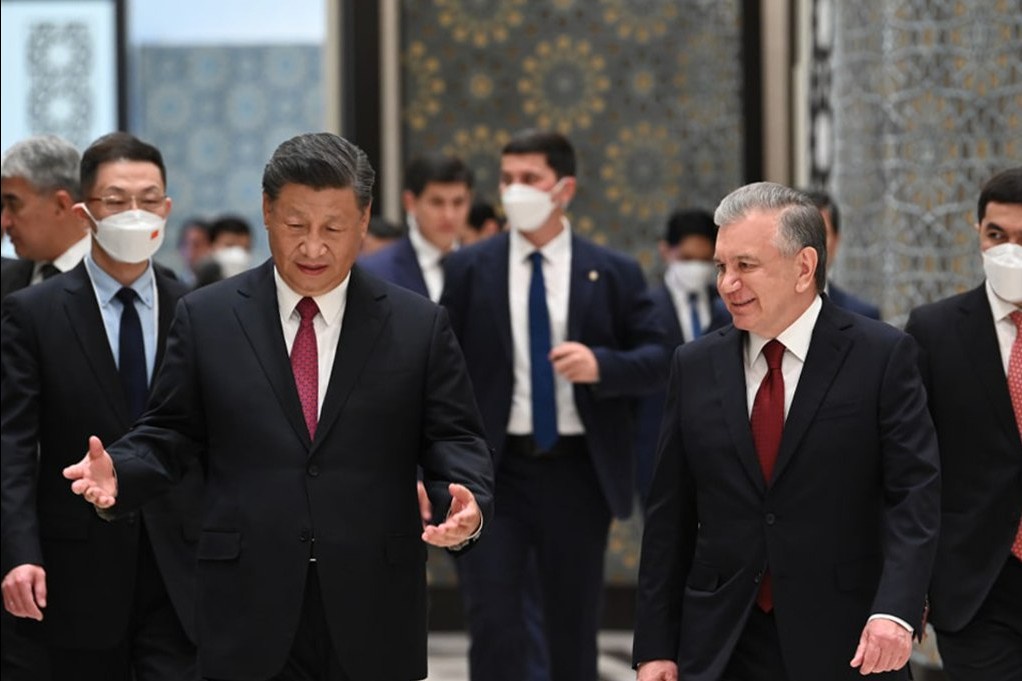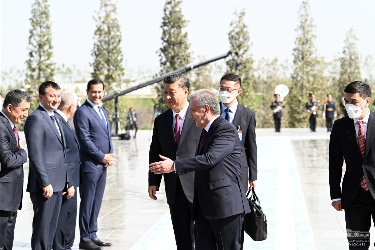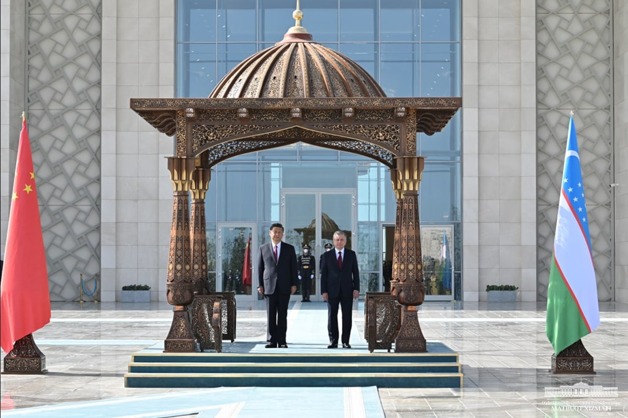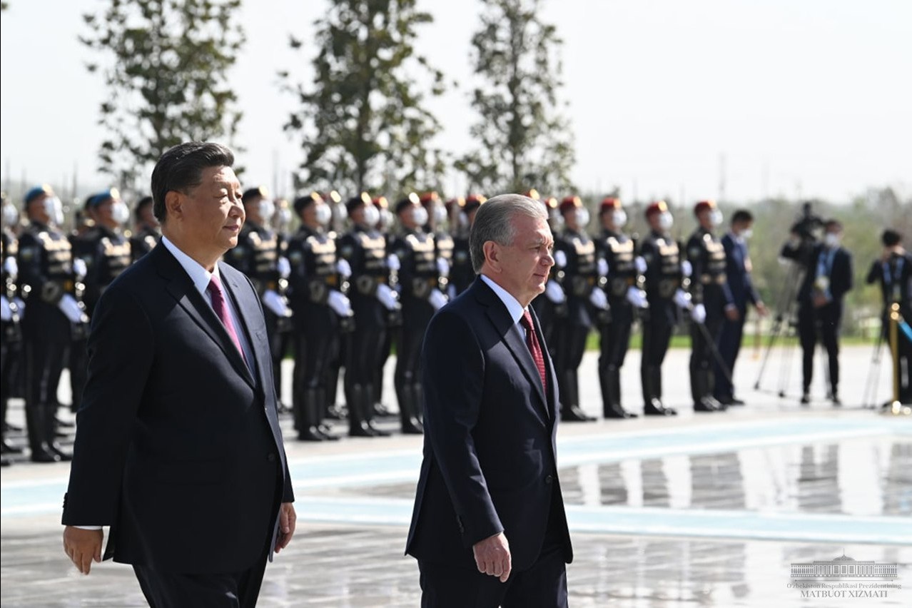 President of Uzbekistan Shavkat Mirziyoyev and President of China Xi Jinping took the podium. The national anthems of the two countries were played. The guard of honor marched in front of the heads of state.