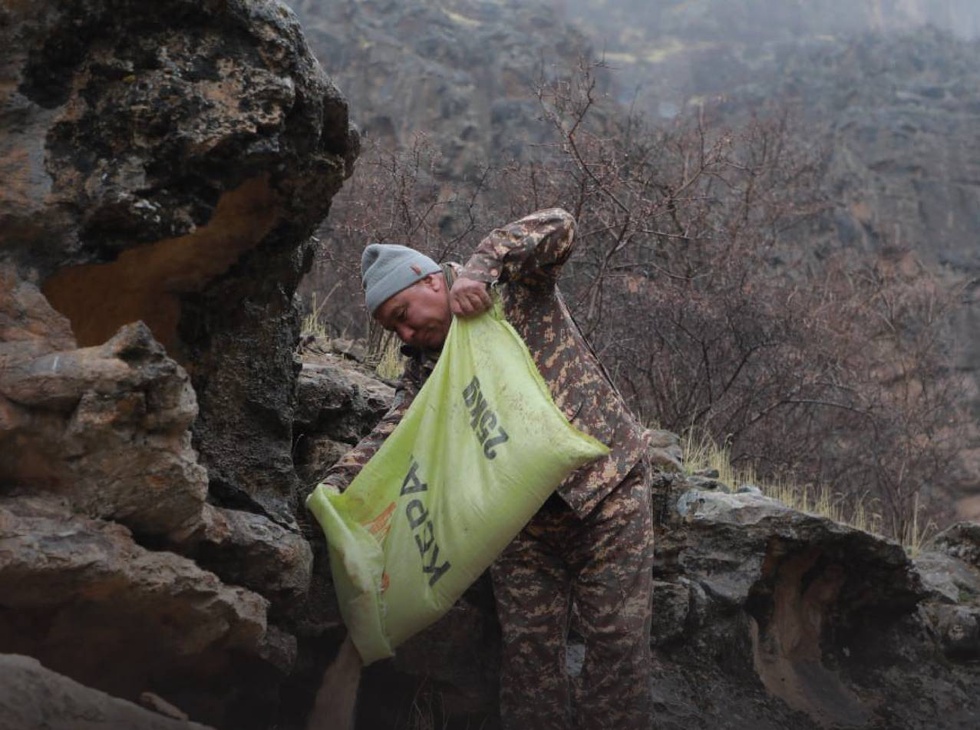 Abnormal winter colds pose a serious threat to wildlife. Wild animals living in high-altitude and desert regions find it difficult to find food in these conditions. In order to preserve biodiversity, products such as salt and feed have been delivered to the Khatak site of the Surkhan State Reserve in animal habitats.