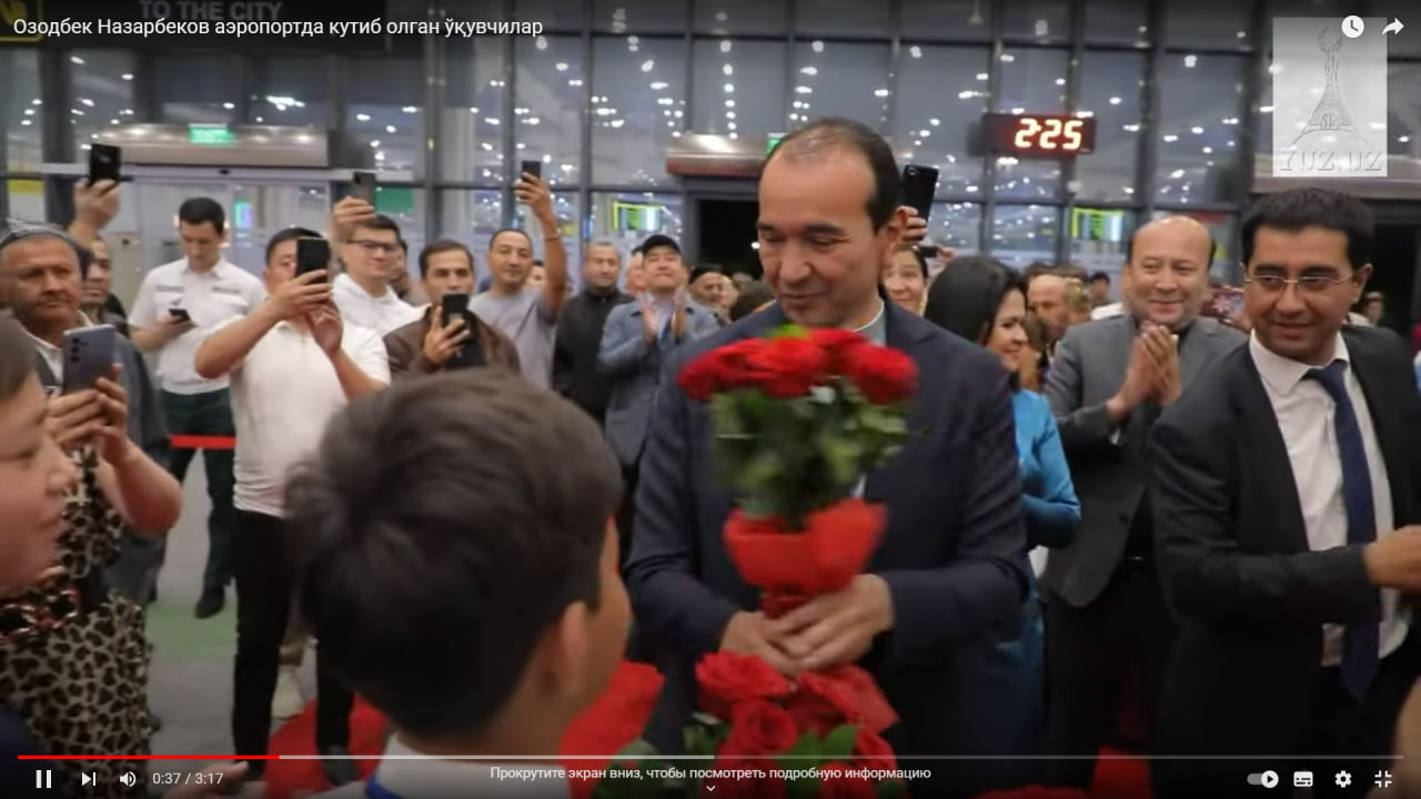 Озодбек Назарбеков аэропортда кутиб олган ўқувчилар