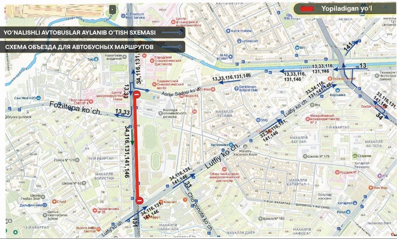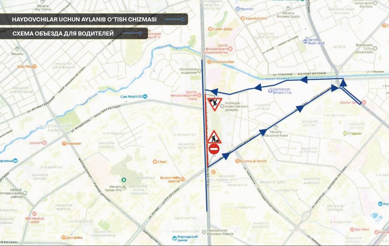 Ограничения коснутся участка МКАД с односторонним движением - от пересечения с улицей Лутфи до пересечения с улицей Асрлар садоси.