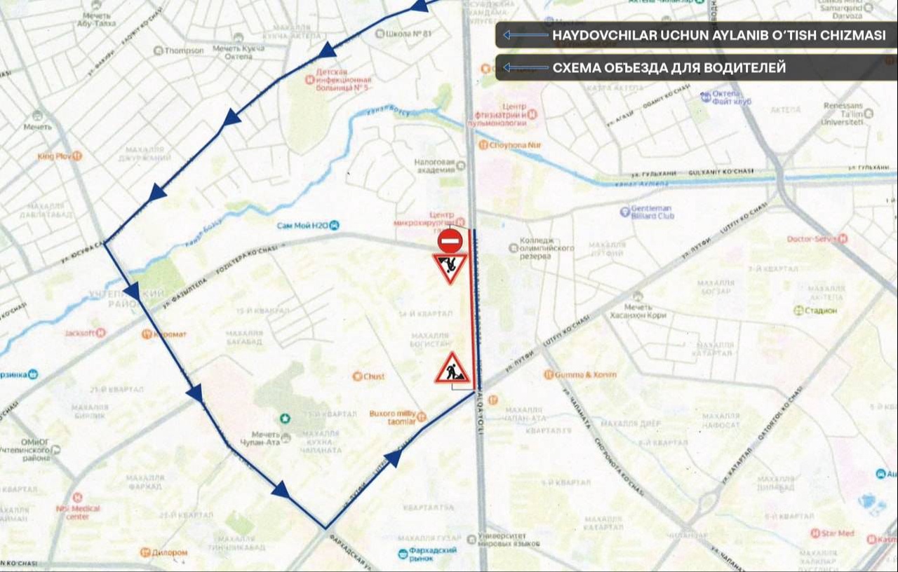 О введении ограничений сообщили в столичном хокимияте. Они связаны с проведением работ по фрезерованию дорожного покрытия, асфальтированию и прокладке трубопровода.