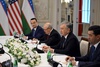 Делегация қурамында ушырасыўда “Traxys” компаниясы директорлар кеңесиниң баслығы Алан Доктер, Колорадо геология мектебиниң вице-президенти Жон Бредфорд, “FLSmidth” компаниясының үлкен вице-президенти Питер Фланаган, “McKinsey” компаниясының үлкен шериги ҳәм Орайлық Азия бойынша офиси басшысы Эрмолай Солженицын ҳәм “Go Green Partners” компаниясының бас директоры Михаил Седой қатнасты.