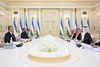 Ушырасыў алдынан жоқары мәртебели мийман мәмлекетимиз басшысына Саудия Арабстаны Патшасы Салмон Ол Сауд ҳәм Мийрасхор, мәмлекет Бас министри Муҳаммад Ол Саудтың сәлеми ҳәм қызғын тилеклерин жеткерди. Министр, сондай-ақ, Патшаның көп миллетли Өзбекстан халқына саўғасы - муқаддес Каъаба жабыўы кисўасының бир бөлегин тапсырды.