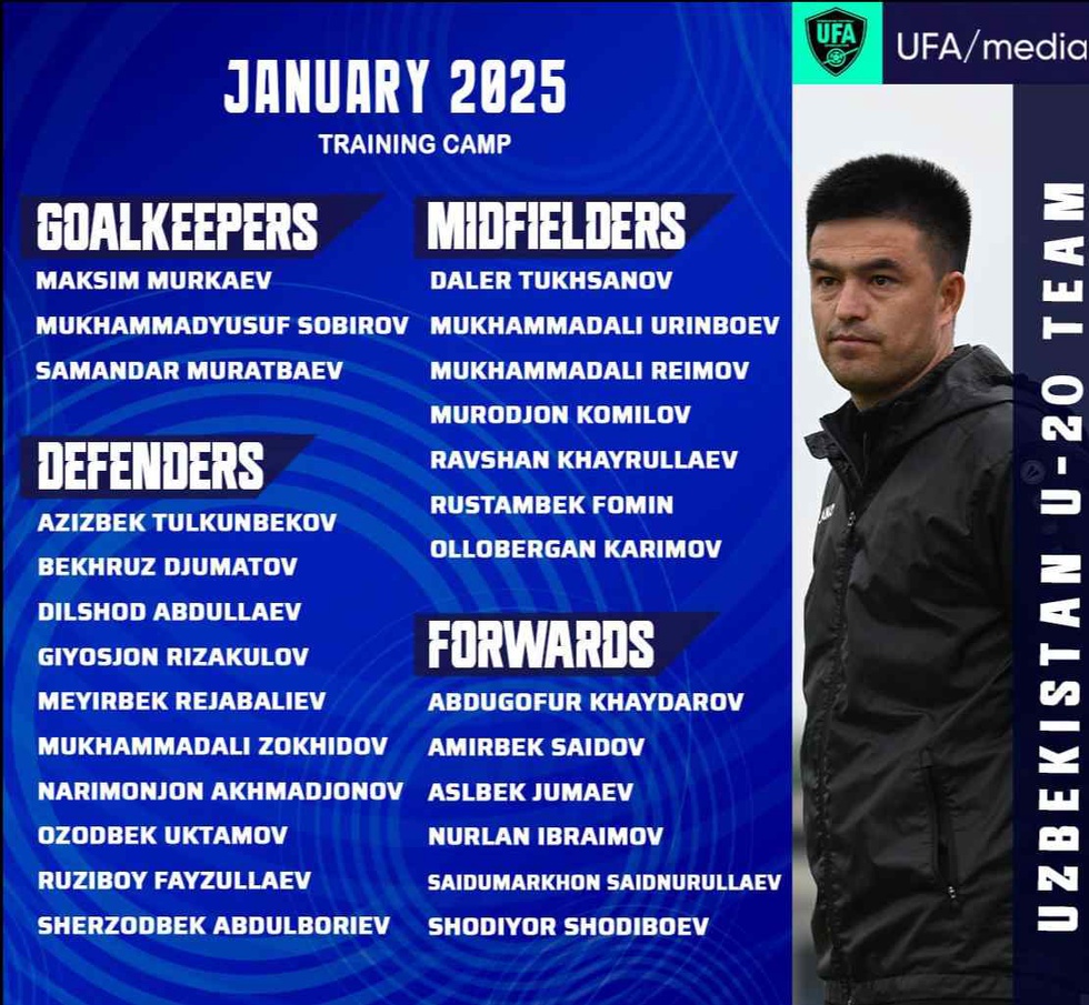 Команда бас тренери Фарҳад Нишанов оқыў шынығыўларына елимиздиң ең күшли 26 жас футболшысын шақырды. Қуўанышлы тәрепи сонда, олардың арасында қарақалпақстанлы дәрўазаман Самандар Муратбаев ҳәм ярым қорғаўшы Муҳаммедали Реймовлар да бар.