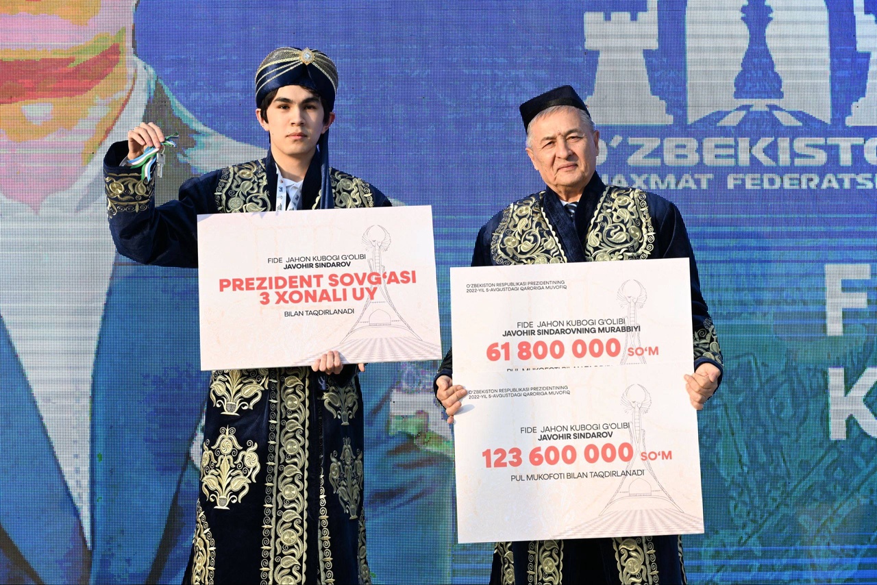Буннан тысқары, шахматшыға Президент саўғасы - үш бөлмели квартира ҳәм ақшалай сыйлық тапсырылды.