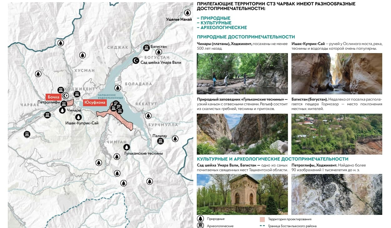 Жобаны жасауда Бостандықтың бірегей табиғи әлеуетін сақтауға бағытталғаны айтылды. Осы себепті «Чорвоқ дарвозаси» және «Юсуфхана» аумақтарында экокаркас және қоғамдық орындардың тұрақты жүйесін құру, экологиялық таза көлікті дамыту жоспарлануда.