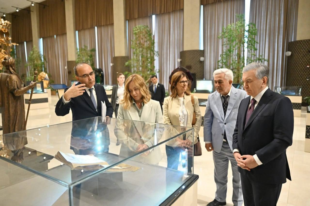 Қонақтарға Афрасиаб қабырғасына салынған әйгілі «Самарқанд билеушісінің елшілерді қабылдау рәсімі» атты суреттің итальяндық шебер Мауро Пеллицонни жасаған Флоренциялық мозаика стиліндегі ерекше көшірмесі көрсетілді.