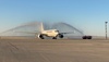 Ұшақ Науаи қаласына жергілікті уақыт бойынша 06:27-де қонды. Дәстүр бойынша жүк тасымалдайтын ұшақты су аркасымен салтанатты түрде қарсы алды.