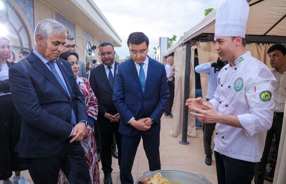 ЭЫҰ Бас хатшысы Хусрав Нозири Туризм комитетінің төрағасы Умид Шадиевпен ынтымақтастықта әр елдің аспаздары үшін салынған арнайы «асханаларды» аралап, тағам дайындау үдерістерімен танысып, дәм татып, шеберліктерін бағалады.